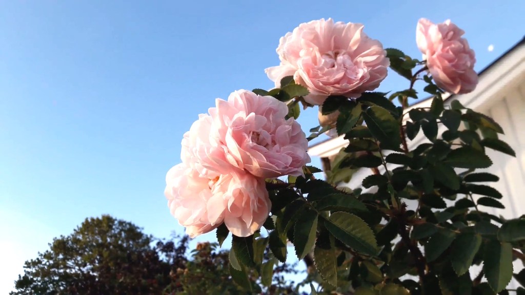 Vårt eksemplar blei flytta for en del år siden, men har ikke sett ut til å lide under det. I år (2020) har treet med det mørke bladverket og en kaprifol gitt for lite lys på plassen og dermed mindre blomstring på rosa.